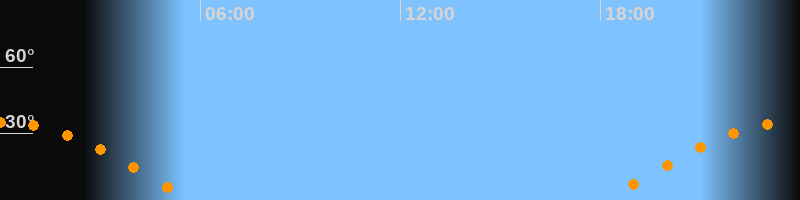 | Aufgang | 18:11 Uhr im Osten (αAz = 95,6°) |