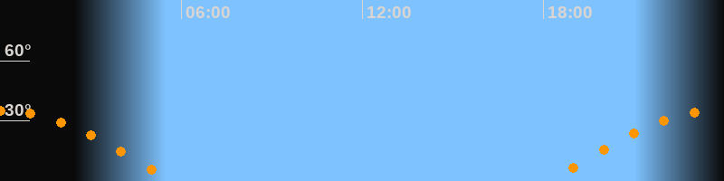 | Aufgang | 18:12 Uhr im Osten (αAz = 95,6°) |