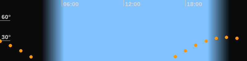 | Aufgang | 16:14 Uhr im Osten (αAz = 95,6°) |