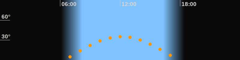 | Höchster Stand (Kulmination) | 12:06 Uhr (h = 35,3°) |