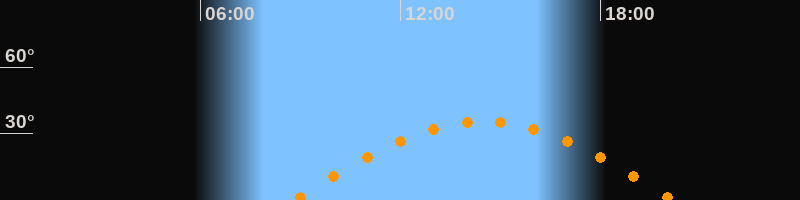 | Höchster Stand (Kulmination) | 14:30 Uhr (h = 35,3°) |