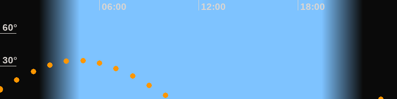 | Aufgang | 22:56 Uhr im Osten (αAz = 95,6°) |