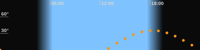 | Höchster Stand (Kulmination) | 18:18 Uhr (h = 35,3°) |