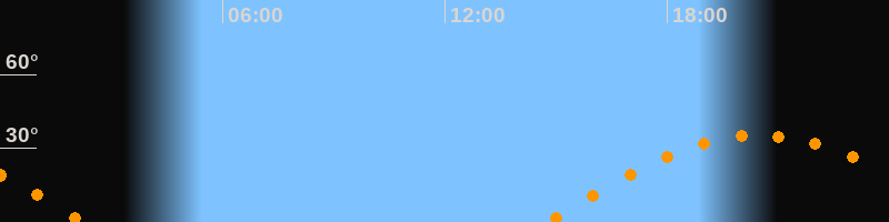 | Aufgang | 14:45 Uhr im Osten (αAz = 95,6°) |