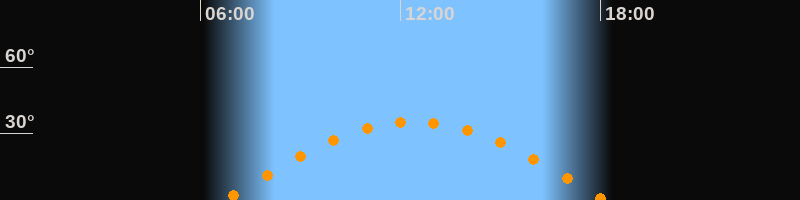 | Höchster Stand (Kulmination) | 12:25 Uhr (h = 35,3°) |