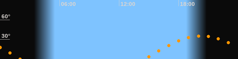 | Aufgang | 14:34 Uhr im Osten (αAz = 95,6°) |