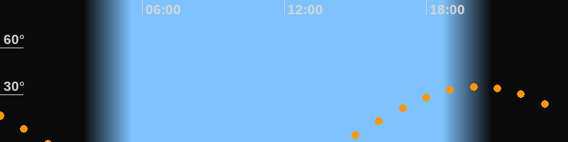 | Aufgang | 14:27 Uhr im Osten (αAz = 95,6°) |