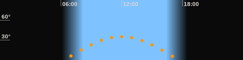 | Höchster Stand (Kulmination) | 11:59 Uhr (h = 35,3°) |