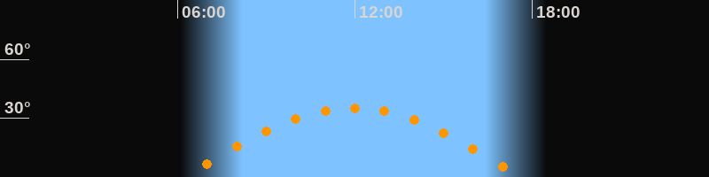| Höchster Stand (Kulmination) | 11:56 Uhr (h = 35,3°) |