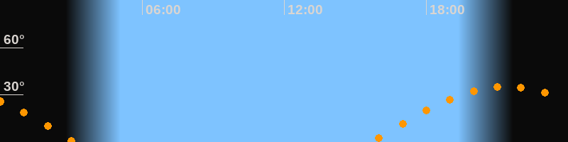 | Aufgang | 15:40 Uhr im Osten (αAz = 95,6°) |