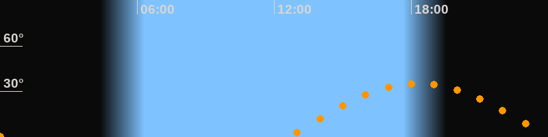 | Höchster Stand (Kulmination) | 18:18 Uhr (h = 35,3°) |