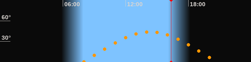 | Höchster Stand (Kulmination) | 14:20 Uhr (h = 44°) |