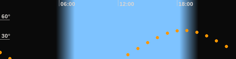 | Höchster Stand (Kulmination) | 18:40 Uhr (h = 44°) |