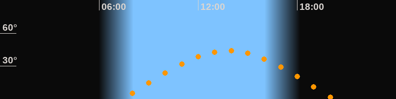 | Höchster Stand (Kulmination) | 13:49 Uhr (h = 44°) |