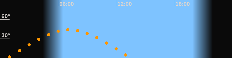 | Höchster Stand (Kulmination) | 07:09 Uhr (h = 44°) |