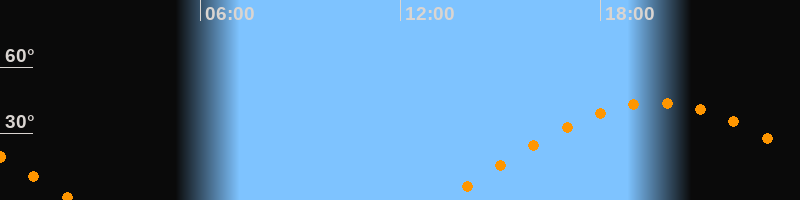 | Höchster Stand (Kulmination) | 19:41 Uhr (h = 44°) |