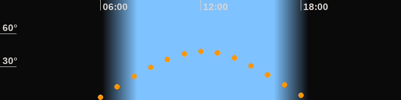 | Höchster Stand (Kulmination) | 12:04 Uhr (h = 44°) |