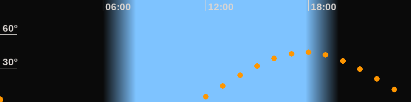 | Höchster Stand (Kulmination) | 17:49 Uhr (h = 44°) |