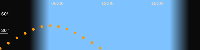 | Höchster Stand (Kulmination) | 06:02 Uhr (h = 44°) |