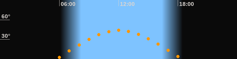 | Höchster Stand (Kulmination) | 12:03 Uhr (h = 44°) |