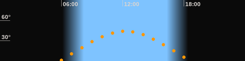 | Höchster Stand (Kulmination) | 12:14 Uhr (h = 44°) |