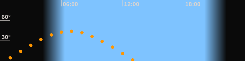 | Höchster Stand (Kulmination) | 06:50 Uhr (h = 44°) |