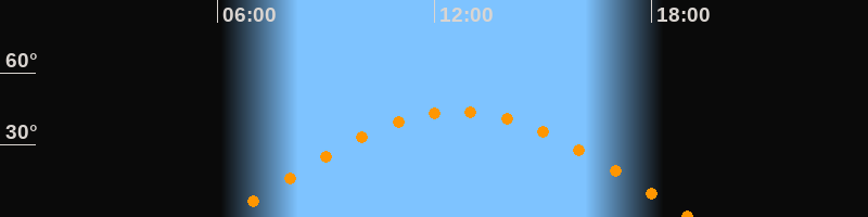 | Höchster Stand (Kulmination) | 12:40 Uhr (h = 44°) |