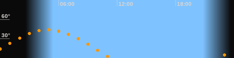 | Untergang | 11:20 Uhr im Westen (αAz = 278,1°) |