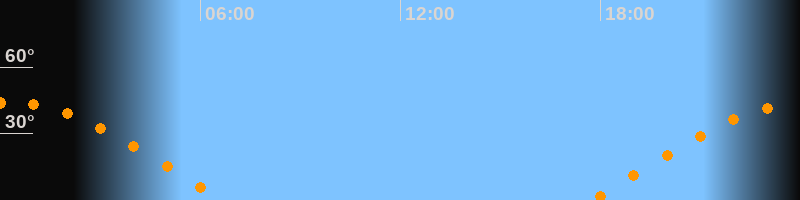 | Aufgang | 17:46 Uhr im Osten (αAz = 81,9°) |