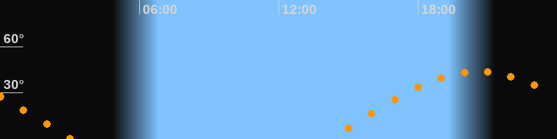 | Höchster Stand (Kulmination) | 20:35 Uhr (h = 44°) |
