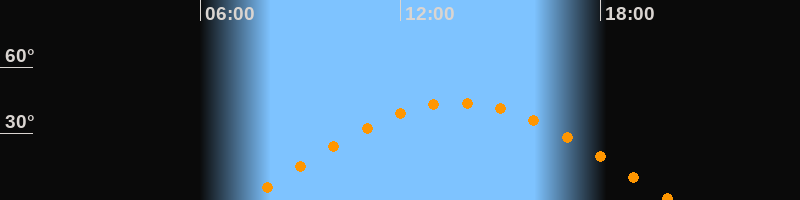 | Höchster Stand (Kulmination) | 13:44 Uhr (h = 44°) |