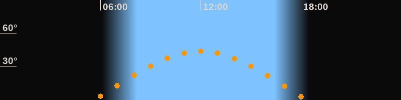 | Höchster Stand (Kulmination) | 11:58 Uhr (h = 44°) |