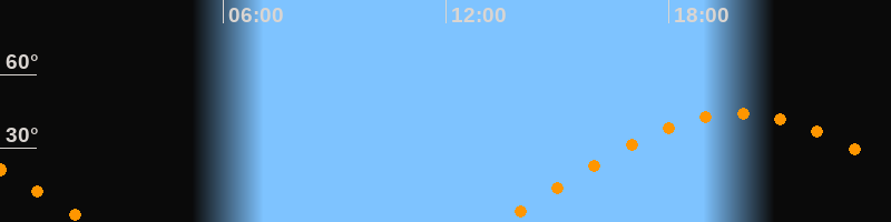 | Höchster Stand (Kulmination) | 19:53 Uhr (h = 44°) |