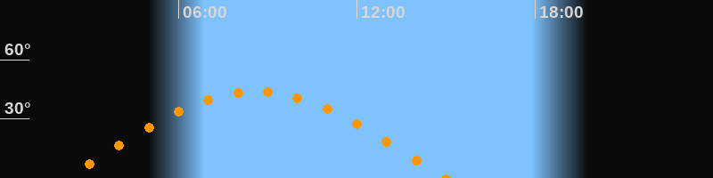 | Höchster Stand (Kulmination) | 08:35 Uhr (h = 44°) |