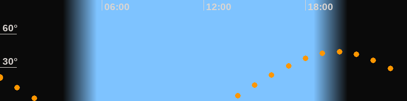 | Aufgang | 13:25 Uhr im Osten (αAz = 81,9°) |