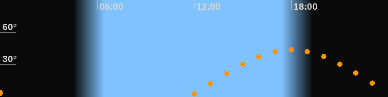 | Höchster Stand (Kulmination) | 18:01 Uhr (h = 44°) |