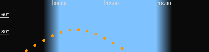 | Höchster Stand (Kulmination) | 08:43 Uhr (h = 38,9°) |