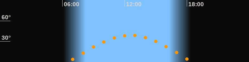 | Höchster Stand (Kulmination) | 12:32 Uhr (h = 38,9°) |