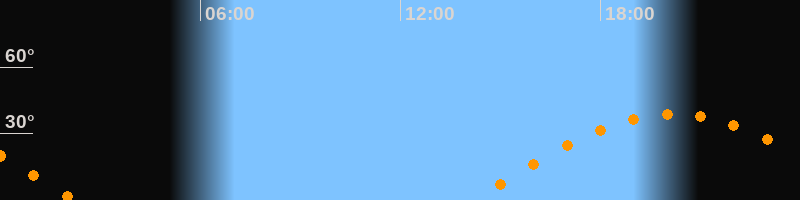| Untergang | 02:16 Uhr im Westen (αAz = 270,1°) |