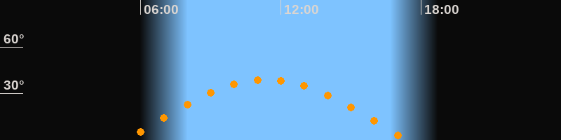 | Höchster Stand (Kulmination) | 11:23 Uhr (h = 38,9°) |