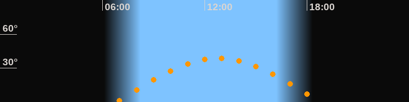 | Höchster Stand (Kulmination) | 12:48 Uhr (h = 38,9°) |