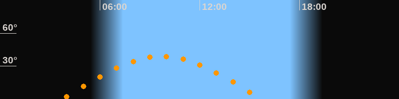 | Höchster Stand (Kulmination) | 09:43 Uhr (h = 38,9°) |