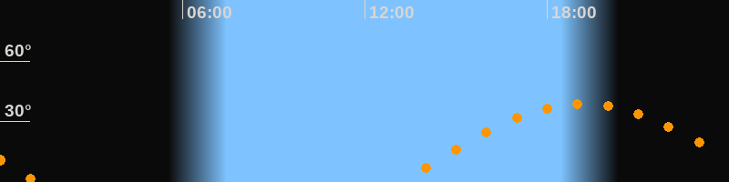 | Untergang | 01:11 Uhr im Westen (αAz = 270,1°) |