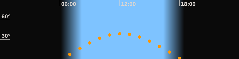 | Höchster Stand (Kulmination) | 12:10 Uhr (h = 38,9°) |