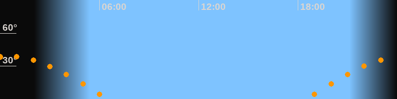 | Aufgang | 18:27 Uhr im Osten (αAz = 89,9°) |
