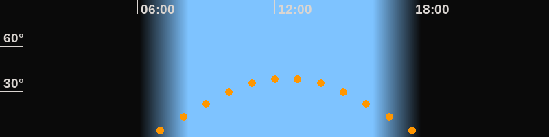 | Höchster Stand (Kulmination) | 12:30 Uhr (h = 38,9°) |