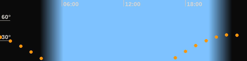 | Untergang | 04:30 Uhr im Westen (αAz = 270,1°) |