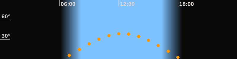 | Höchster Stand (Kulmination) | 12:20 Uhr (h = 38,9°) |