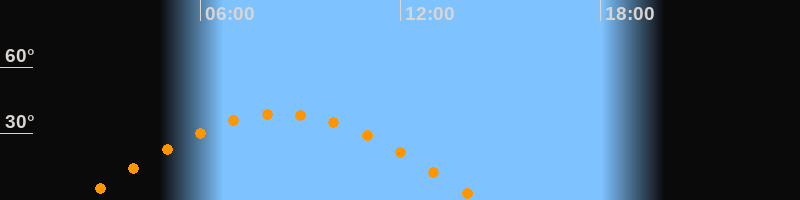 | Höchster Stand (Kulmination) | 08:24 Uhr (h = 38,9°) |