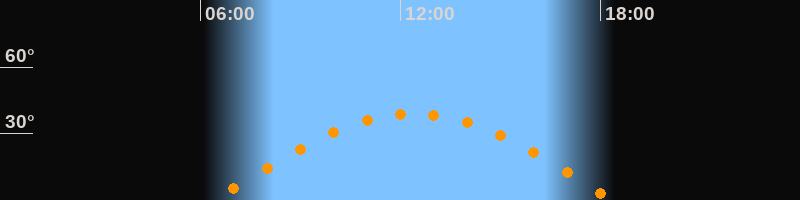 | Höchster Stand (Kulmination) | 12:23 Uhr (h = 38,9°) |